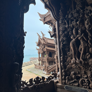 Day 6- A floating villa breakfast began the day, followed by exploring the wooden Sanctuary of Truth, the largest wooden castle in the world. After an ocean-view lunch at The Oxygen Beachfront Oasis, we cruised to Sai Kaew Beach and Monkey Island, then closed with beachfront dinner at Glass House Boho.